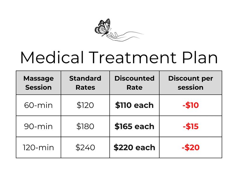 Absolutely. What makes Medical massage so unique is we partner with you as well as your other healthcare providers to come up with. agame plan that works with the greater picture of your wellness plan. Our Medical Treatment Plan has two phases, the intensive phase and the maintenance phase. In the Intensive phase the Patient visits in shorter, more frequent intervals to tackle the root cause of chronic pain and conditions. Once the corrective results are achieved the patient moves into the Maintenance phase in longer, less frequent intervals that depends on the rate of regression and the acuteness of their condition. Learn more about signing up for the Medical Treatment Plan for discounted rates below.
